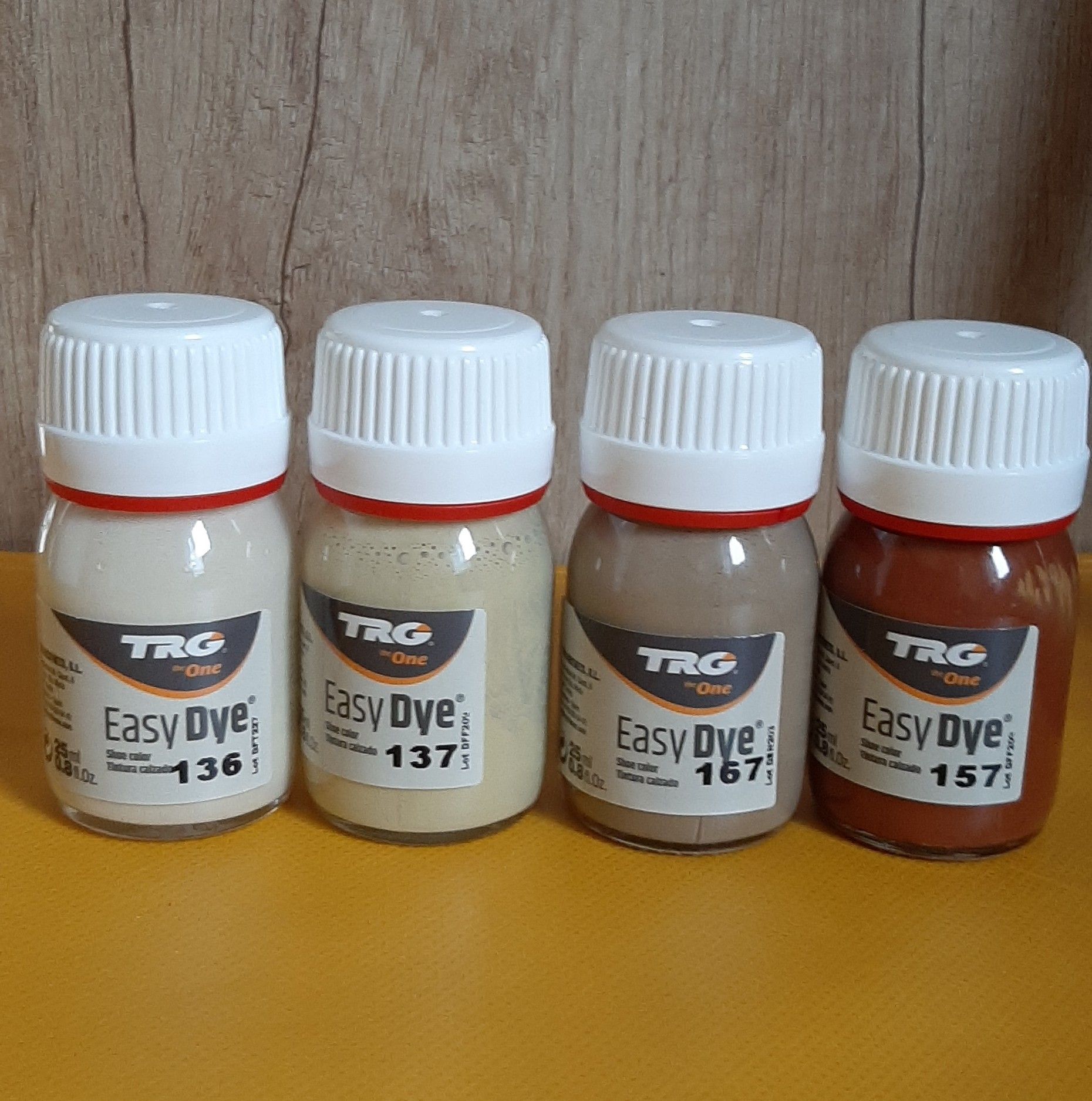 NÁŠ TIP - farba na kožu TRG Easy Dye je vysoko kryjúca farba a je teda ideálna pre farbenie nepoškodenej, málo poškodenej alebo vyblednutej kože, koženky či vyšúchaného obuvníckeho plátna. Jednoducho a za nízku cenu zachránite poškodený povrch vašich topánok a kožených doplnkov alebo zmeníte ich farbu na krajší odtieň. Vrátite život vašim obľúbeným topánkam a doplnkom. Pred aplikáciou odporúčame povrch vyčistiť a odmastniť čističom Universal cleaner.